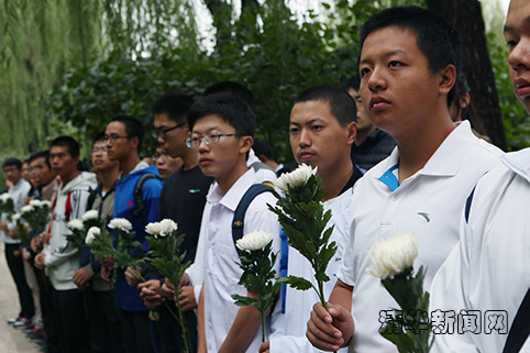全体师生依次向英烈碑一一敬献鲜花并鞠躬致敬。