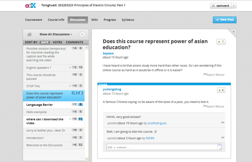 图为edX上《电路原理》讨论区截图。