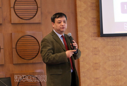 图为孙茂松介绍“学堂在线”平台的建设情况。记者 智 斐
